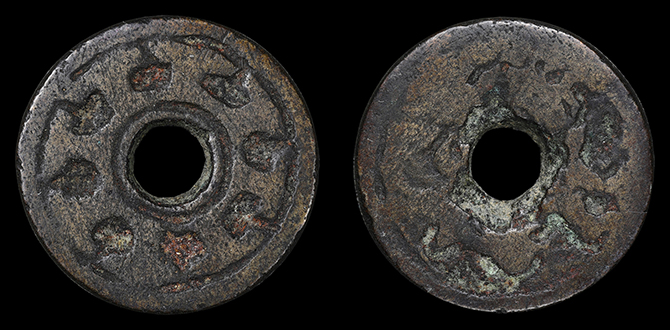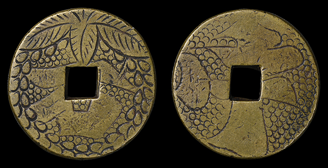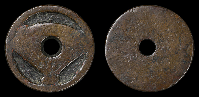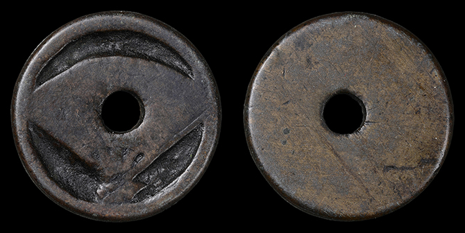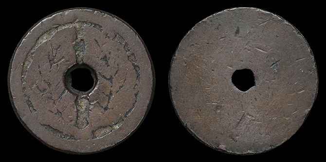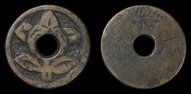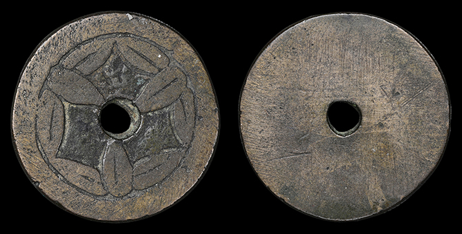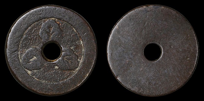 2090 絵銭 紋切銭 下り藤と石 背中 24.8mm 厚2.7mm 上 9,000円