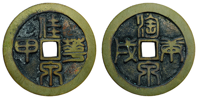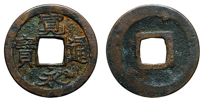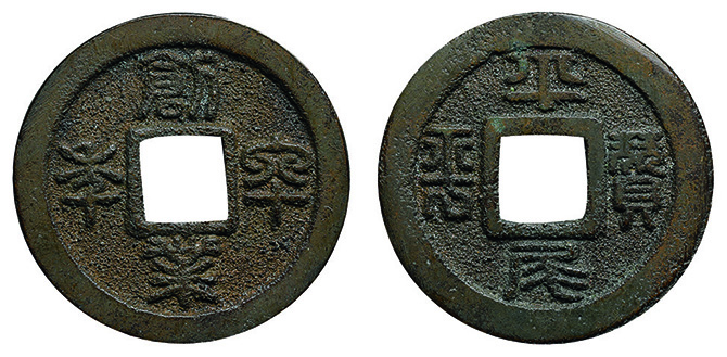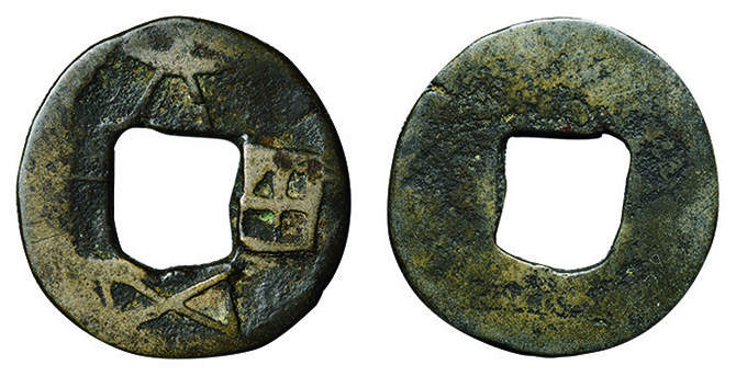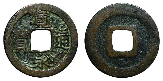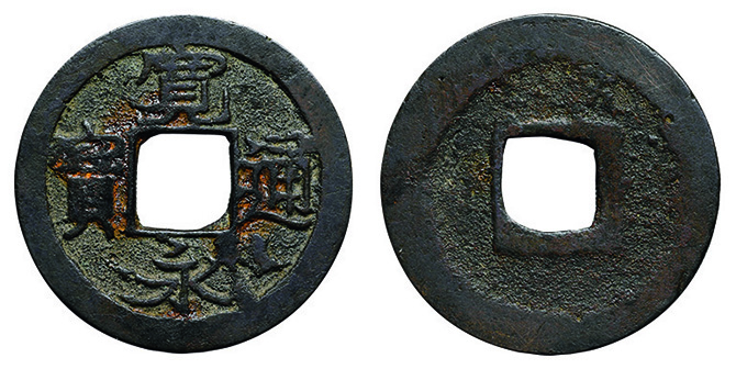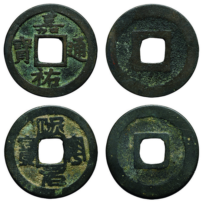 6022 穴銭2枚組(長崎貿易銭 嘉祐通宝、和鋳鐚 錠熈寧) 佳 5,000円