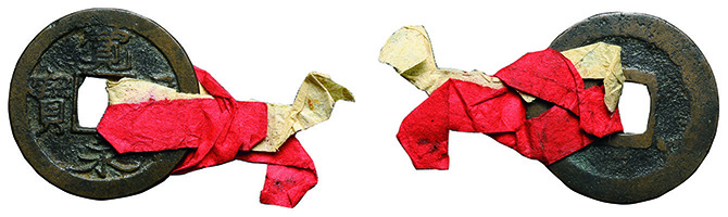6210 差し2本組(新寛永 背文銭 200枚差し、文久永宝 100枚差し) 佳~上 5,000円