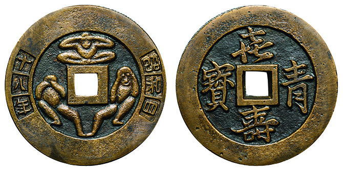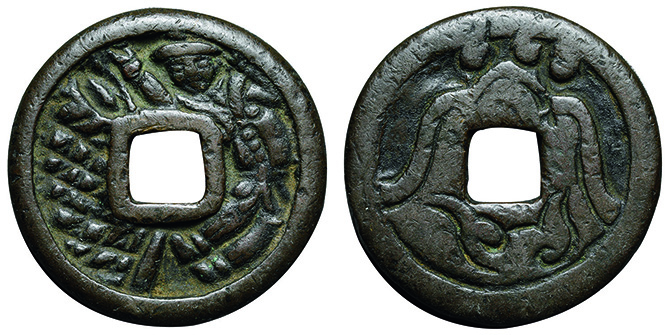 6224 絵銭 浅間銭 南蛮人 捲雲 中様銭 約44.9mm 52.9g 上 45,000円