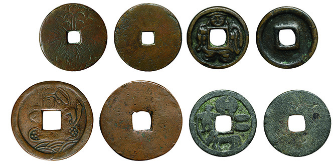 6231 絵銭4枚組(分銅駒、面子銭大黒、紋切銭、打印銭) 佳 5,000円