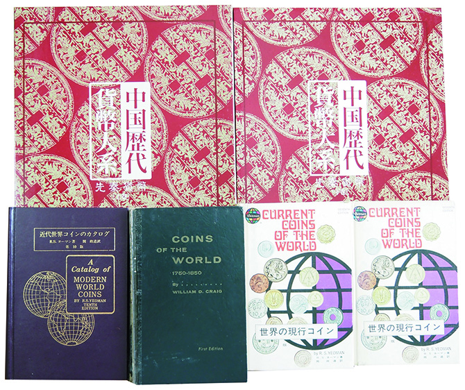 6360 『中国歴代貨幣大系』上海人民出版、『近代世界コインカタログ』第10版 ヨーマン著 岡政道訳 昭和47年、『世界の現行コイン』昭和52年 第7版 ヨーマン著 岡政道訳 2冊、『コインオブザワールド』クライグ著 英文 計5冊組 佳〜美 5,000円