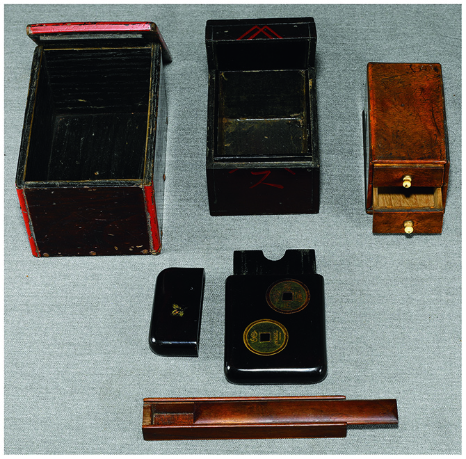 6390 札挟み(太政官札用) 160×100mm、藩札箱 215×80×高さ40mm、藩札箱 215×95×高さ30mm 計3点組 上 3,000円