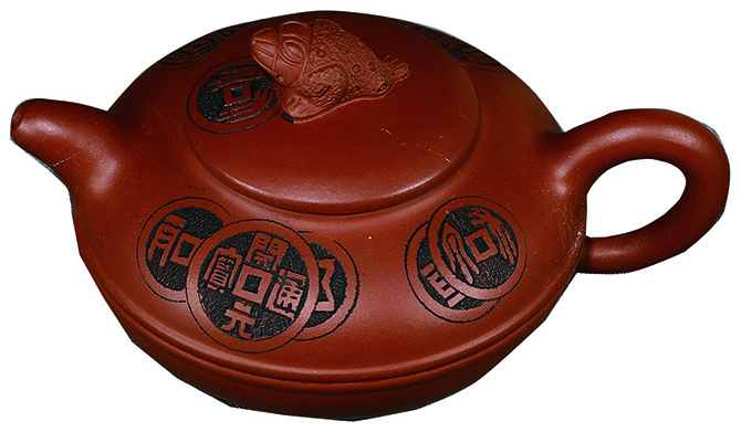6421 古銭柄 朱泥急須(煎茶器) 14.5×11×高さ7.5cm 美 3,000円
