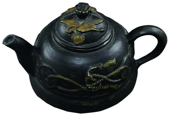 6423 中国黄銅製薬罐(やかん) 清朝五大銭尽くし 15×12.5×高さ16cm 美 6,000円