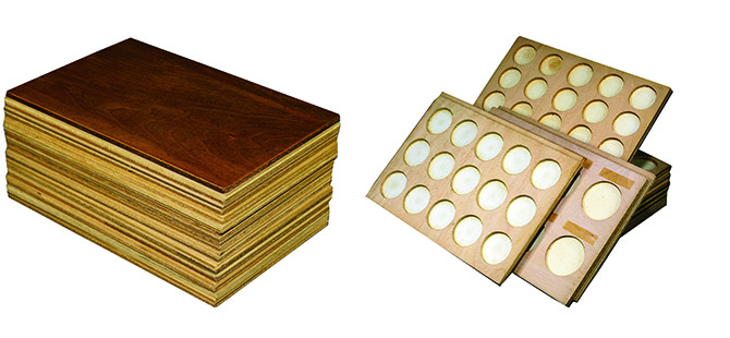 6432 木製コイン整理トレー 12枚(蓋付) 穴銭用か? 最小1文銭用 最大円銀用 24個入5枚 20個入3枚 15個入2枚 8個入2枚 最大226枚収納 全体横20×幅14×高さ9cm 上 1,800円