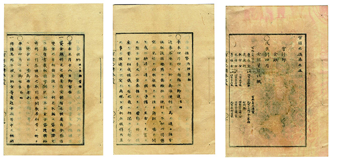 6445 明治4年御布告3点組(出納正月18日、楮幣4月4日、会計部金銀4月) 上 5,000円