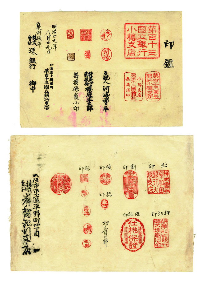 6447 第113国立銀行 小樽支店印鑑見合帳、岸和田銀行大阪支店印鑑見合帳 計2点組 上 5,000円