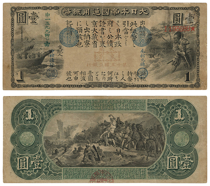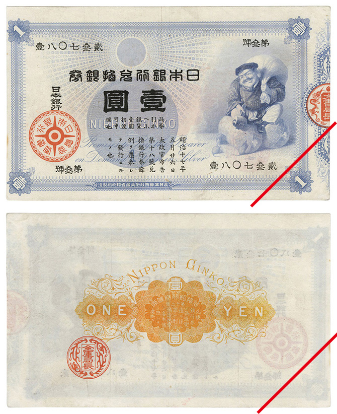 4004 旧国立銀行券 1円 第15銀行(東京) 修正有 上 280,000円