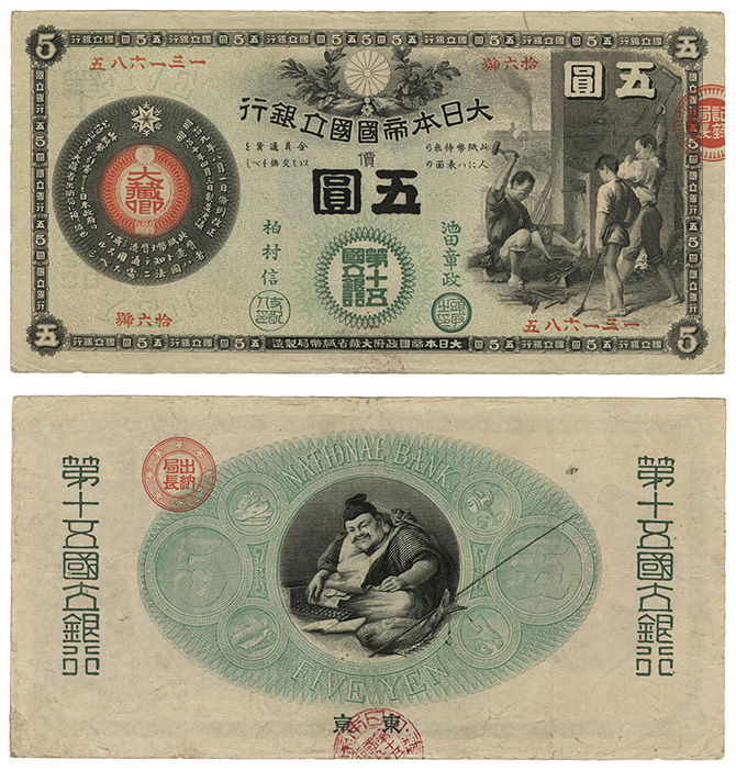 4006 新国立銀行券 5円(かじや5円) 第15銀行(東京) 美 250,000円