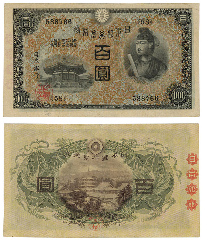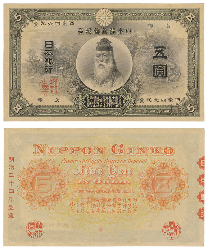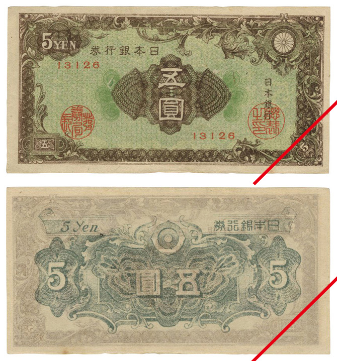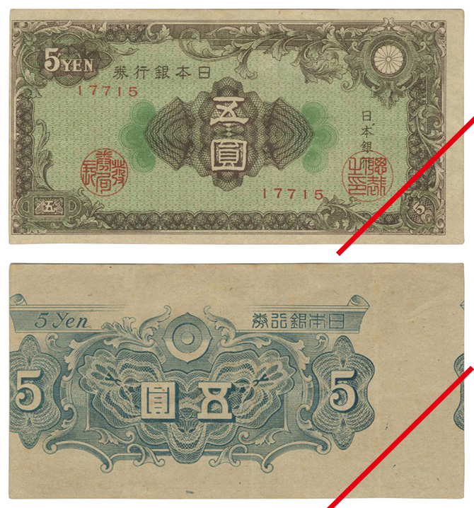 4033 1次100円 裏日本銀行割り印有 美 5,000円