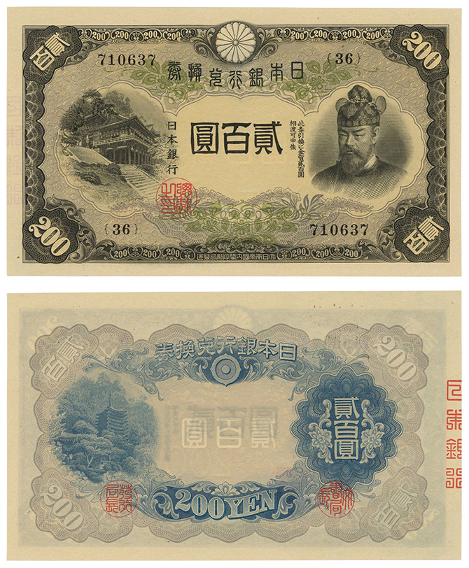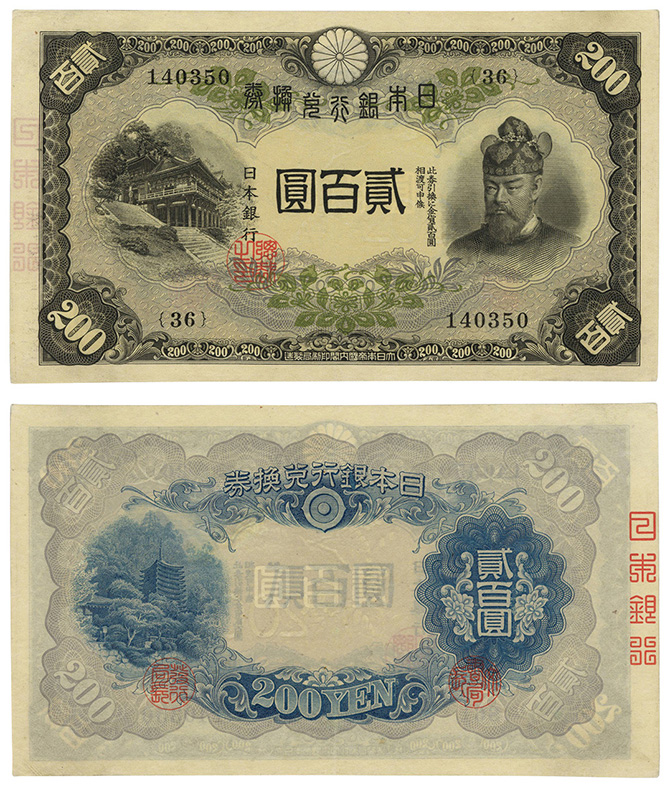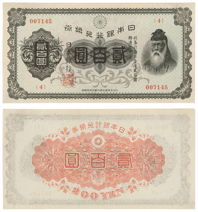 4038 藤原200円 裏日本銀行割り印有 極美 15,000円