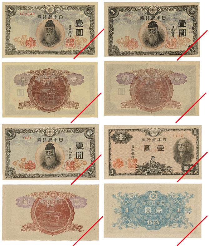 4056 昭和期1円券 4種組(中央武内 1組、改正中央武内 前期&後期、二宮 1112) 未 5,000円