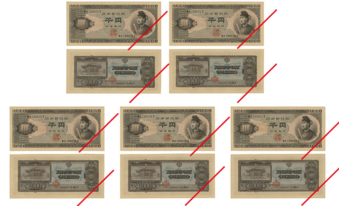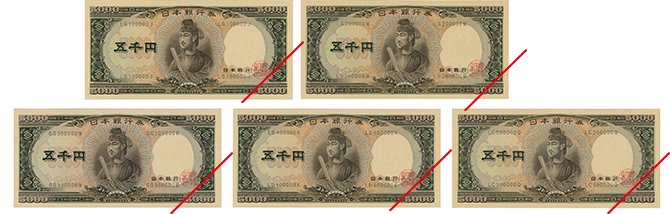4072 聖徳5000円(2桁異記号) 5枚組(100000、200000、300000、400000、500000) 未 50,000円