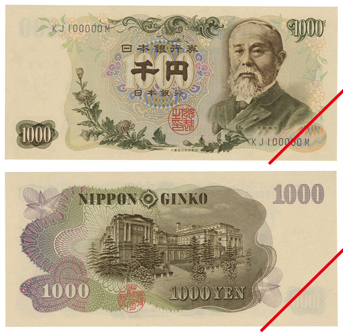 4088 夏目1000円(茶) D012345B 未 10,000円