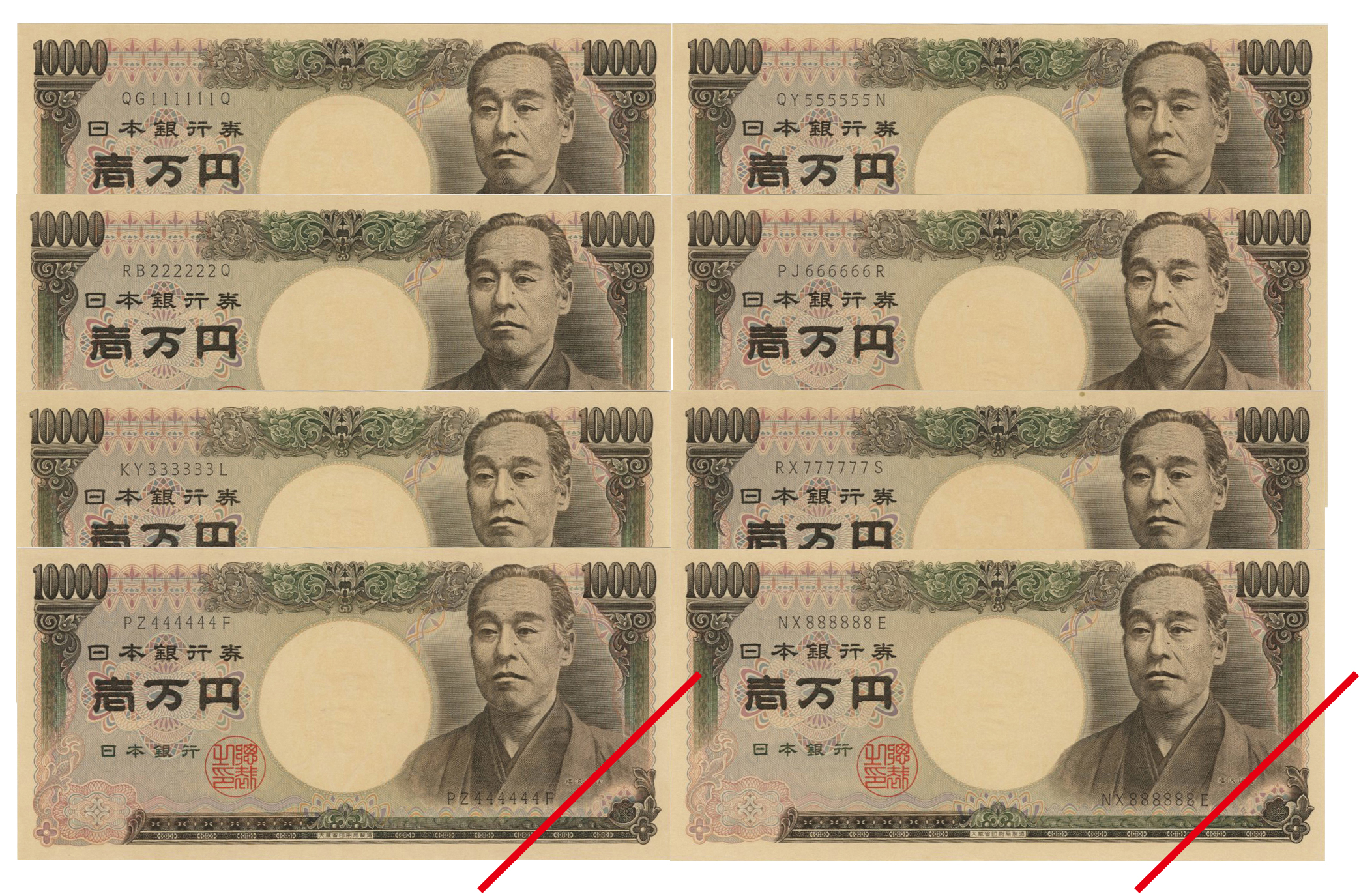 4078 旧福沢10000円(黒・異記号) ゾロ目8枚組(111111~888888) 7ゾロはシミ有 準未~未 100,000円