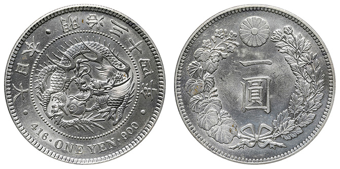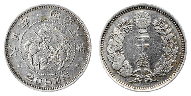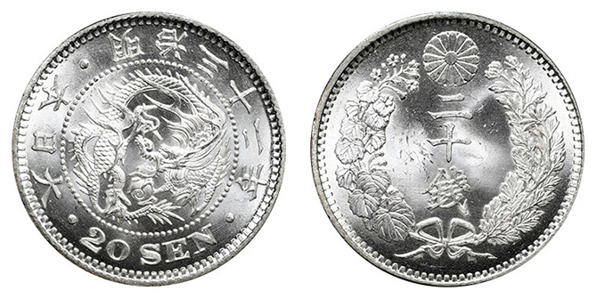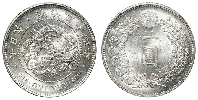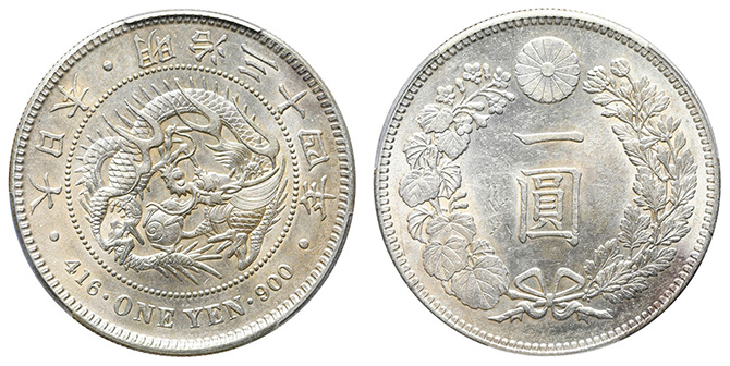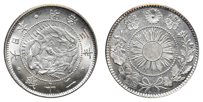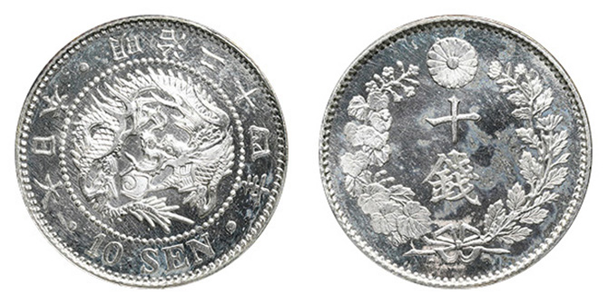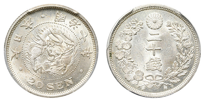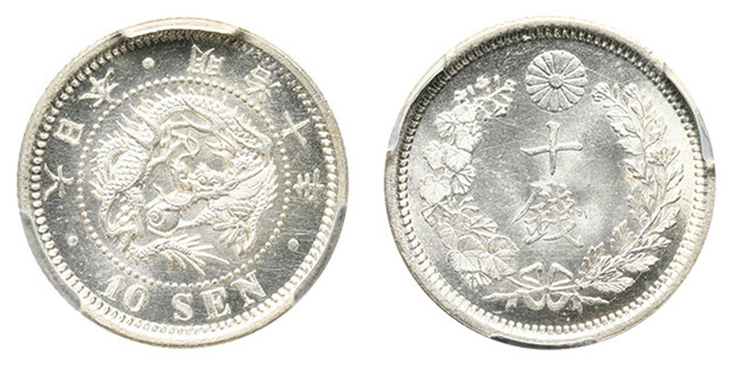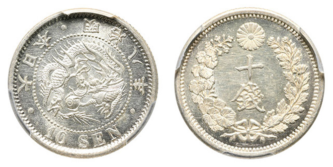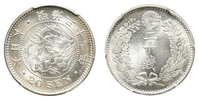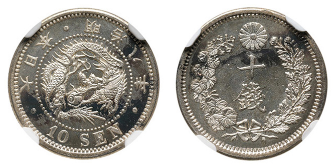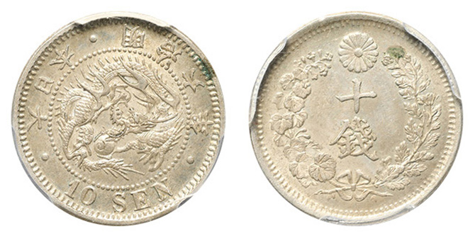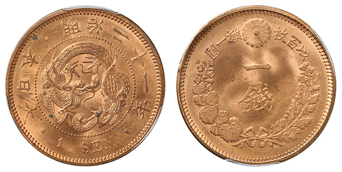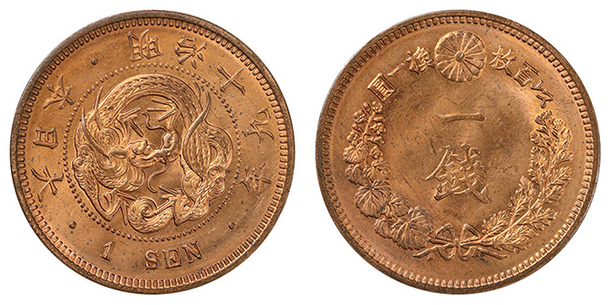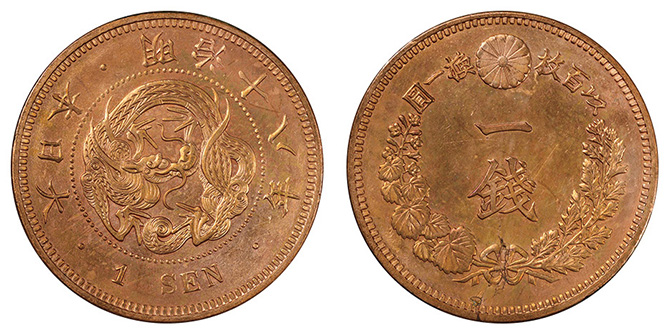 4411 竜1銭銅貨 明治21年 PCGS(MS64RD) 未 10,000円