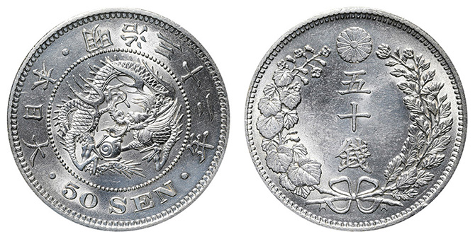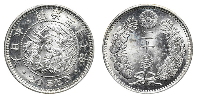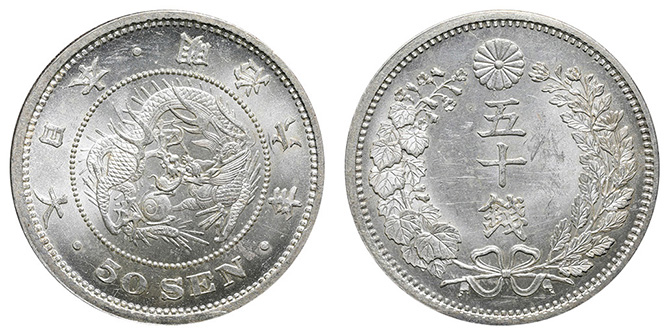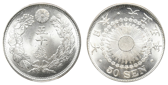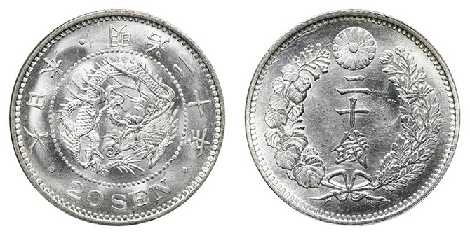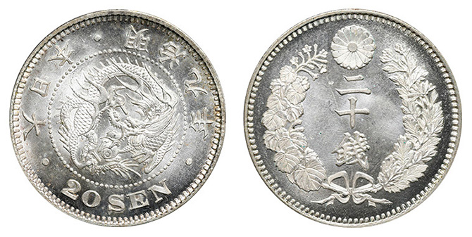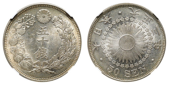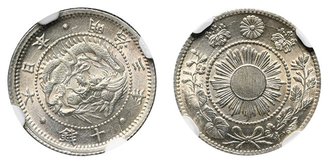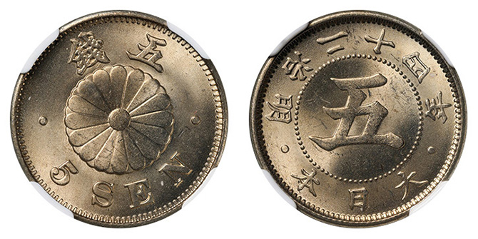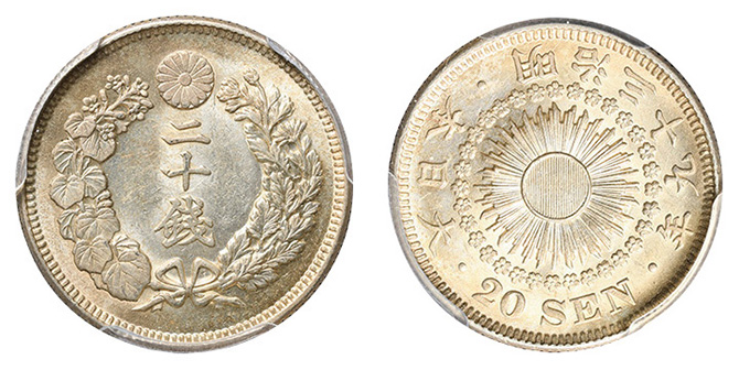 4396 菊5銭白銅貨 明治24年 NGC(MS64) 未 9,000円