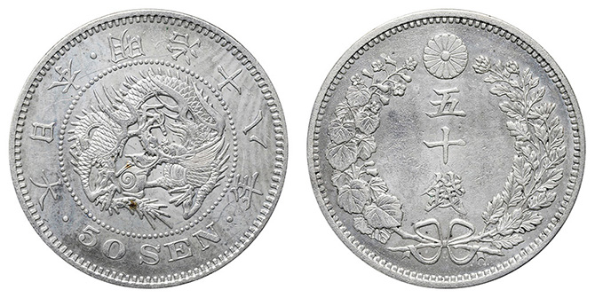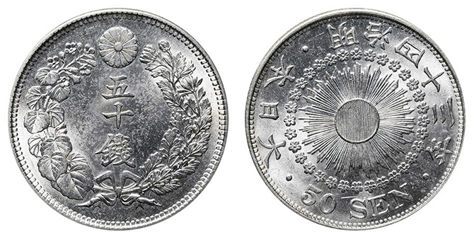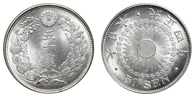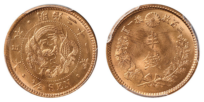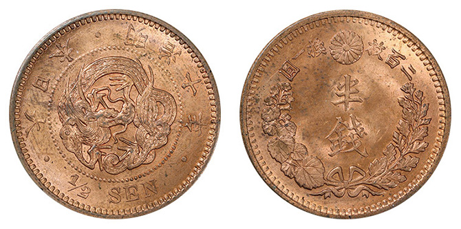 4427 半銭銅貨 明治21年 PCGS(MS64RD) 未 15,000円