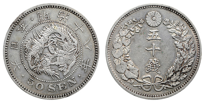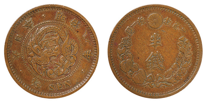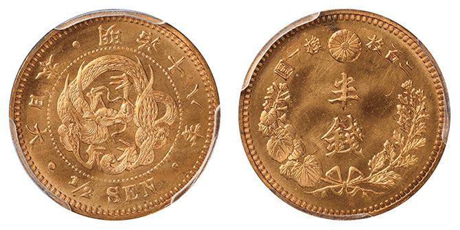 4425 半銭銅貨 明治18年 PCGS(MS65RD) 未 8,000円