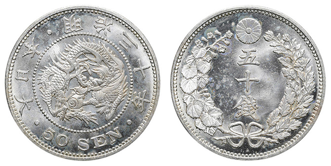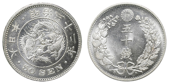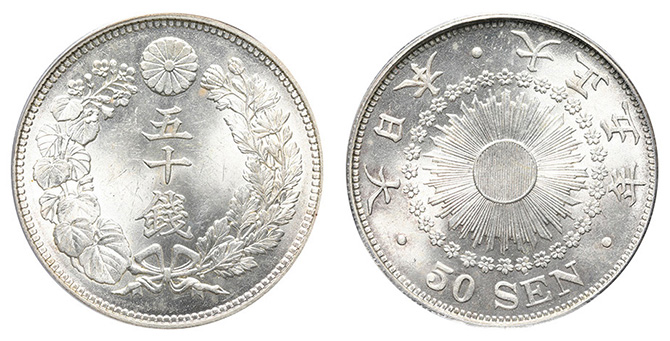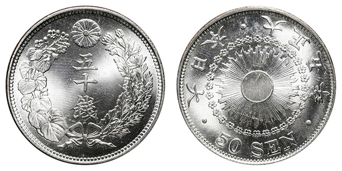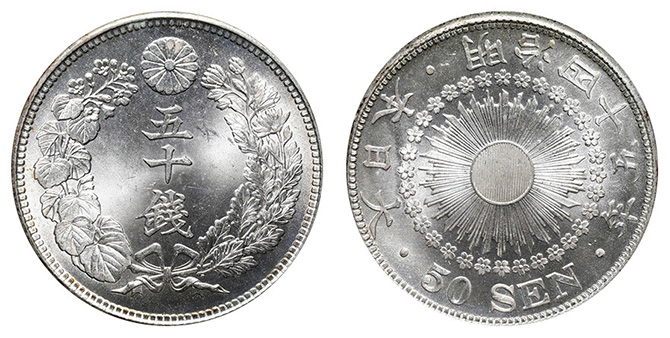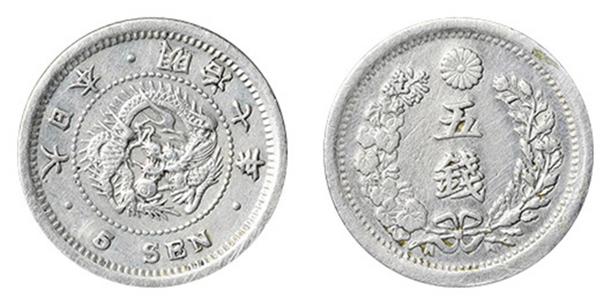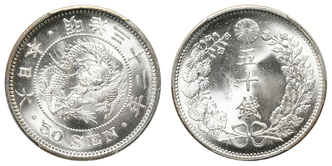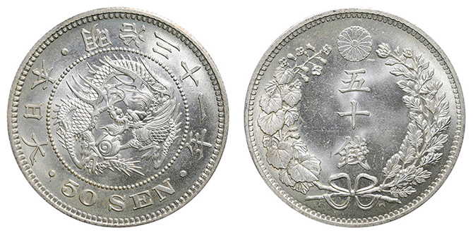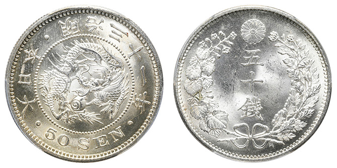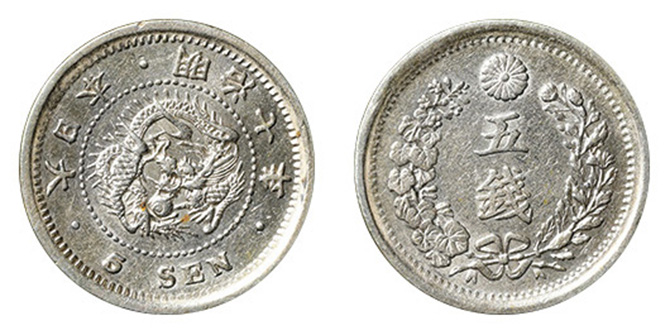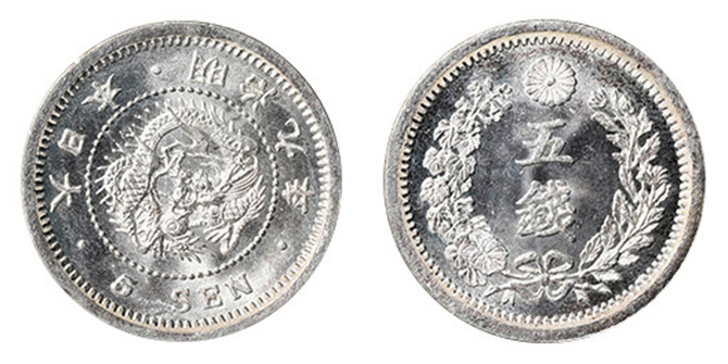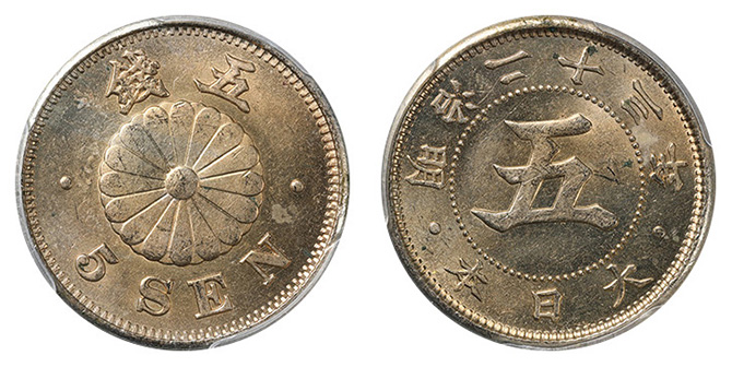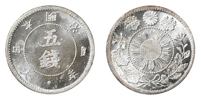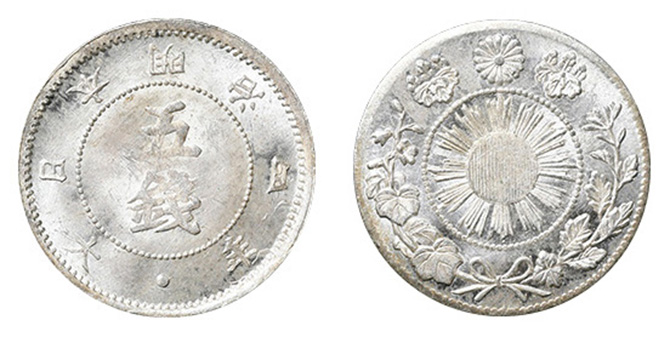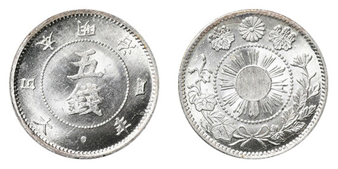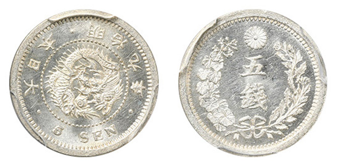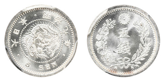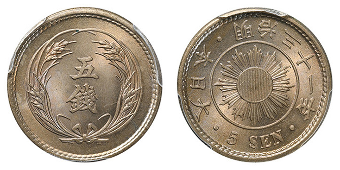 4397 稲5銭白銅貨 明治31年 PCGS(MS66) 未 10,000円