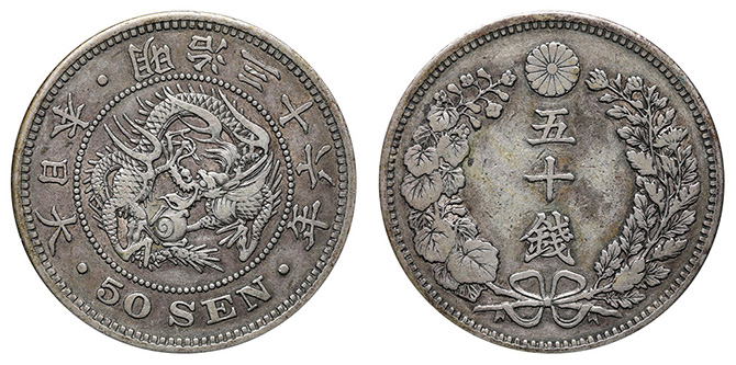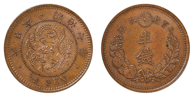 4418 半銭銅貨 明治7年 太竜 美~極美 4,000円