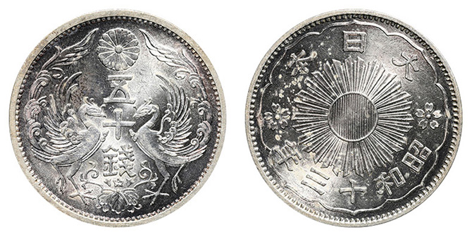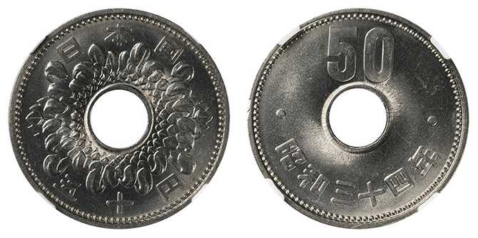 4444 50円ニッケル貨 昭和34年 PCGS(MS65) 未 5,000円