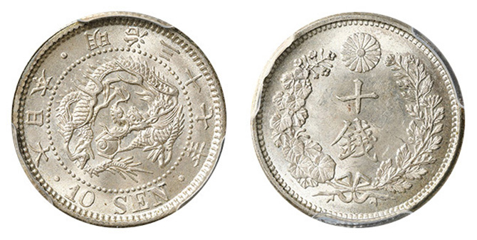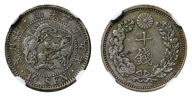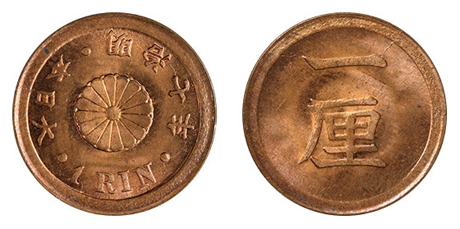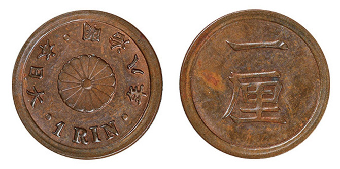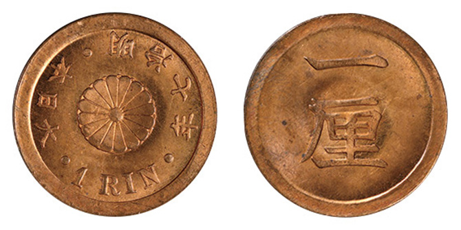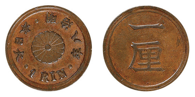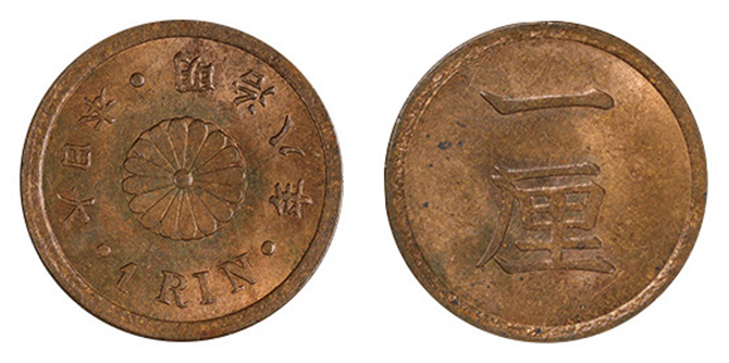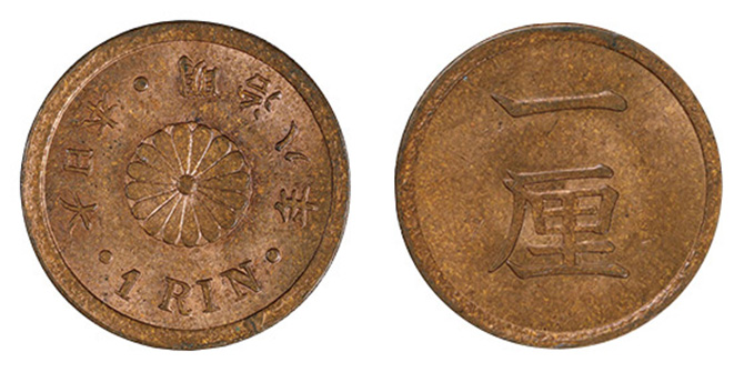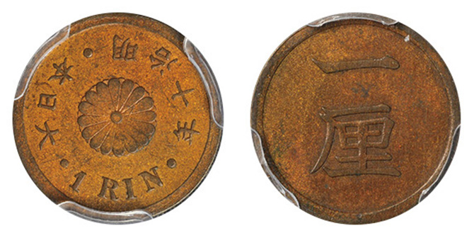 4434 1厘銅貨 明治10年 PCGS(AU58) 極美 120,000円