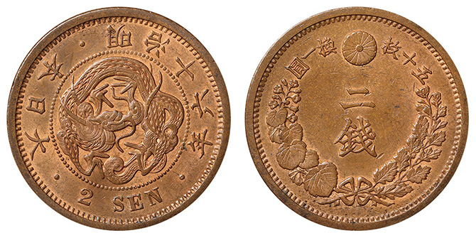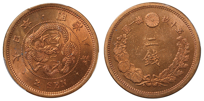 4400 2銭銅貨 明治8年 PCGS(MS65RB) 未 20,000円