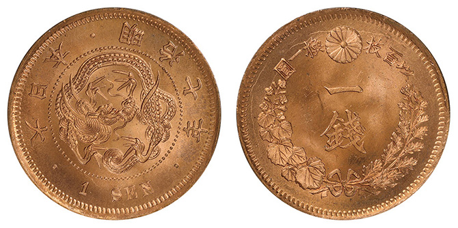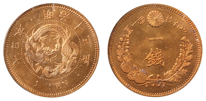 4406 竜1銭銅貨 明治13年 PCGS(MS65RD) 未 10,000円