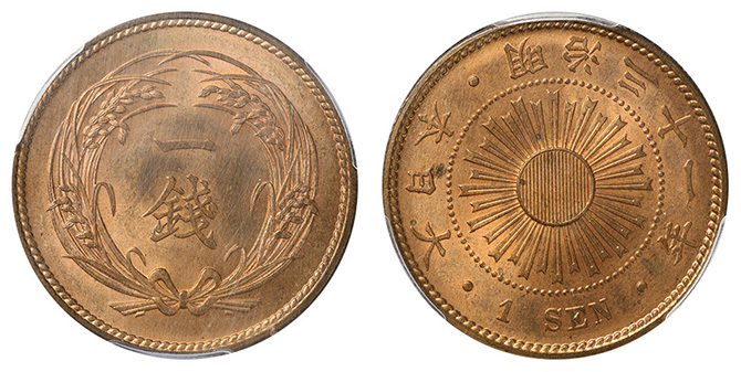 4413 稲1銭青銅貨 明治31年 PCGS(MS64RD) 準未~未 8,000円