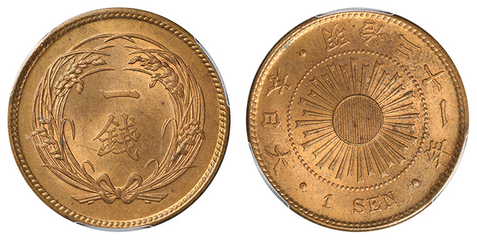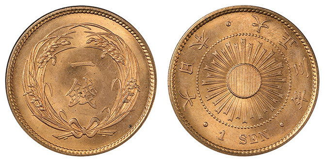 4412 稲1銭青銅貨 明治31年 PCGS(MS65RD) 未 18,000円