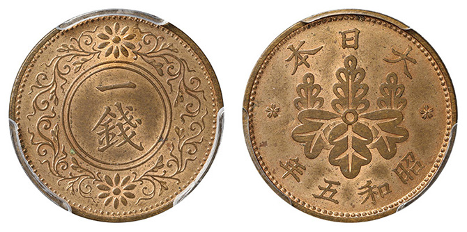 4417 桐1銭青銅貨 昭和5年 PCGS(MS63RB) 極美+ 5,000円