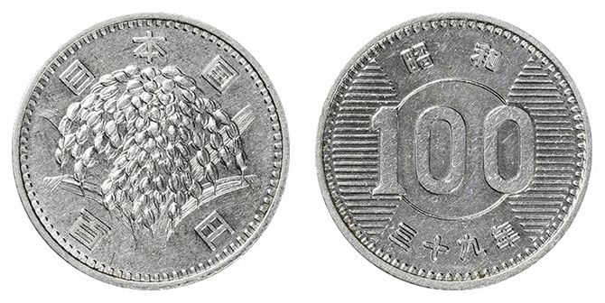4437 稲穂100円銀貨 昭和39年 粗稲穂・長ヒゲ 美 8,000円