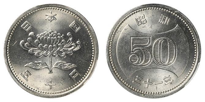4446 50円ニッケル貨 昭和36年 PCGS(MS66) 未 10,000円