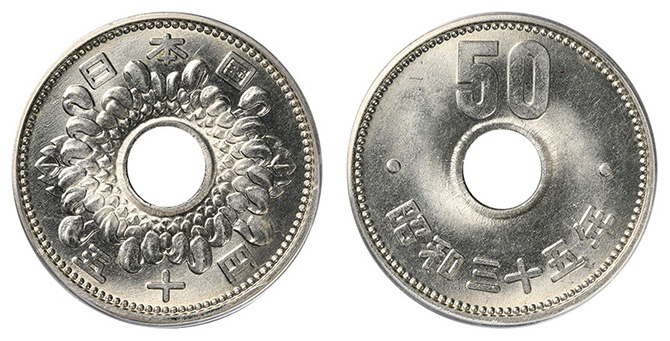 4445 50円ニッケル貨 昭和35年 PCGS(MS66) 未 10,000円