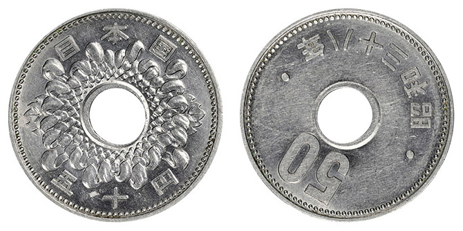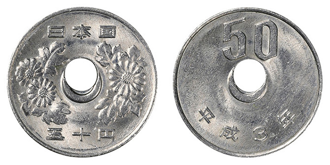 4451 50円白銅貨 平成3年 穴ズレエラー 美 5,000円