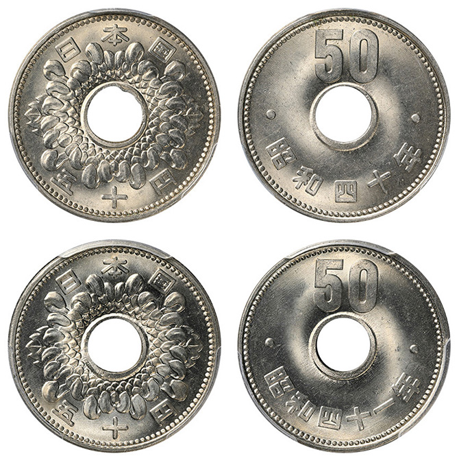 4449 50円ニッケル貨 2枚組(昭和40年 PCGS(MS66)、昭和41年 PCGS(MS66)) 未 5,000円