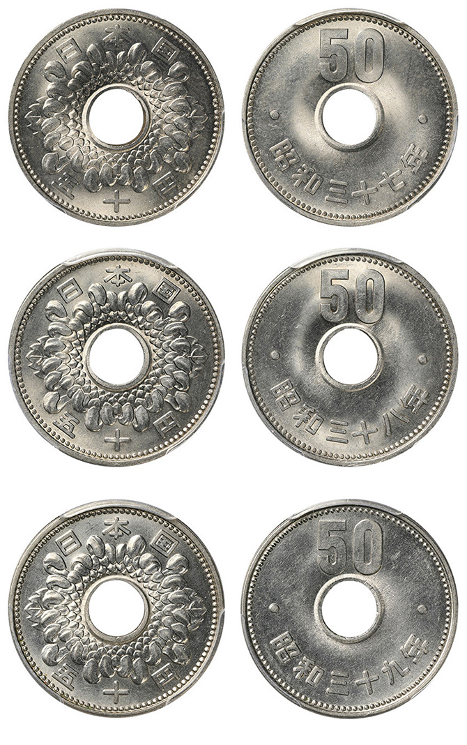 4450 50円ニッケル貨 3枚組(昭和37年 PCGS(MS66)、昭和38年 PCGS(MS64)、昭和39年 PCGS(MS63)) 未 5,000円