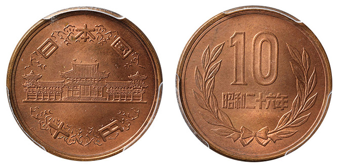 4458 10円青銅貨 昭和27年 PCGS(MS65RD) 未 5,000円