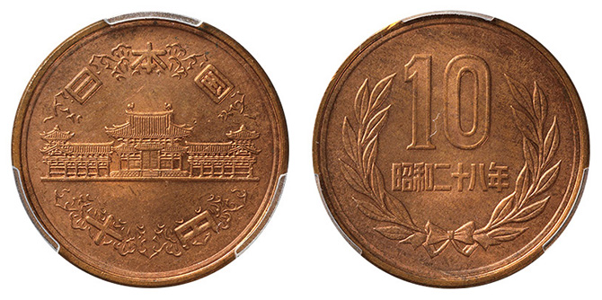 4460 10円青銅貨 昭和28年 PCGS(MS66RD) 未 10,000円