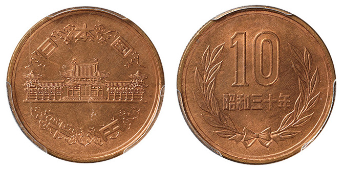 4463 10円青銅貨 昭和30年 PCGS(MS65RD) 未 10,000円