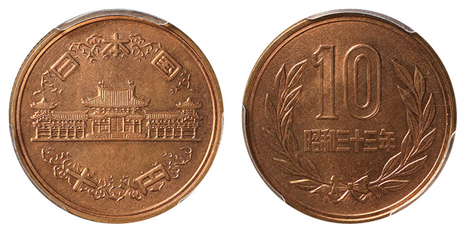 4465 10円青銅貨 昭和33年 PCGS(MS66RB) 未 10,000円