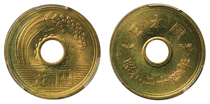4477 5円黄銅貨 昭和24年 PCGS(MS66) 未 4,000円