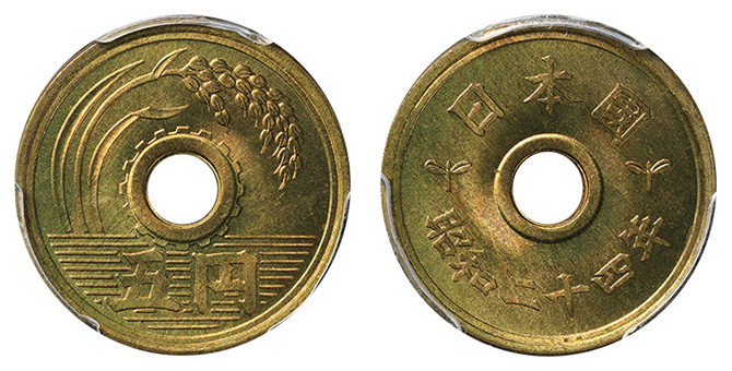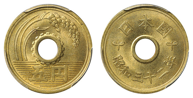 4480 5円黄銅貨 昭和27年 PCGS(MS67) 未 10,000円