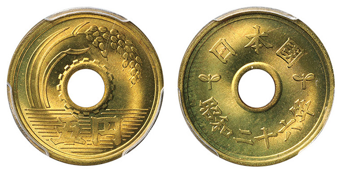 4479 5円黄銅貨 昭和26年 PCGS(MS67) 未 10,000円