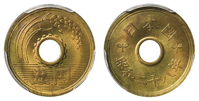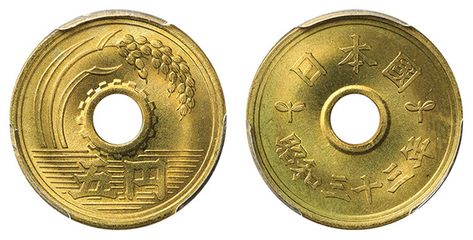 4483 5円黄銅貨 昭和33年 PCGS(MS67) 未 10,000円