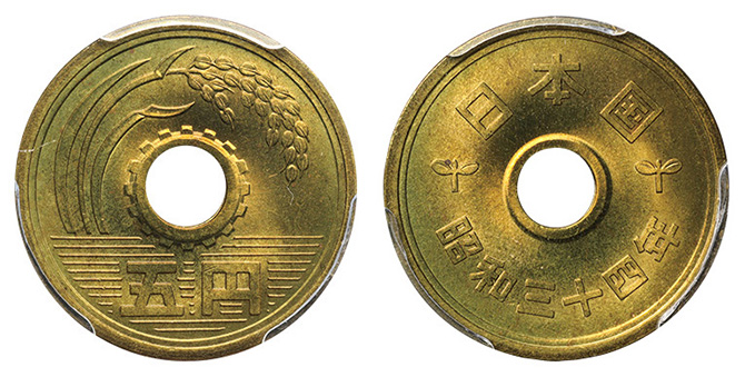 4484 5円黄銅貨 昭和34年 PCGS(MS66) 未 5,000円