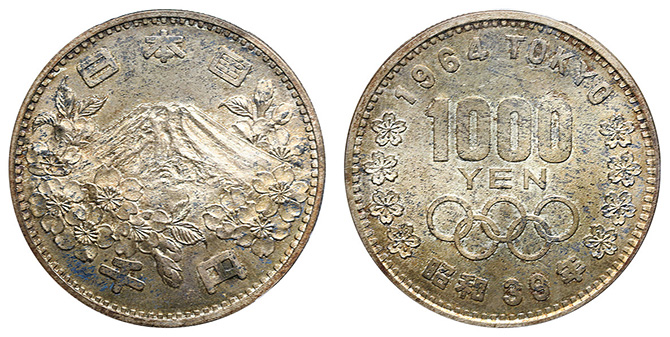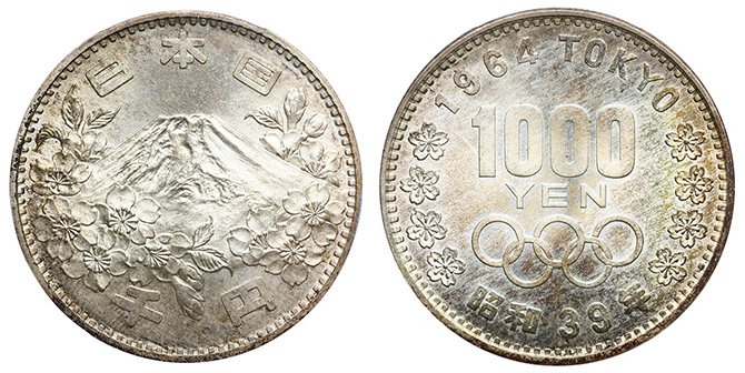 4487 東京五輪1000円銀貨 昭和39年 PCGS(MS66) トーン 未 6,000円