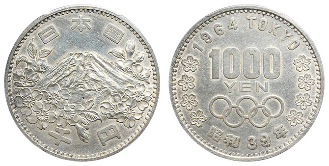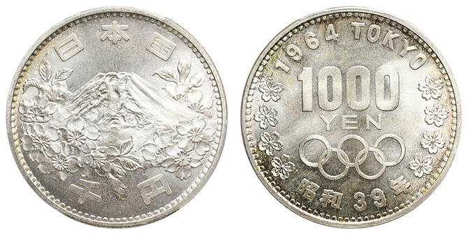 4488 東京五輪1000円銀貨 昭和39年 PCGS(MS66) 未 6,000円